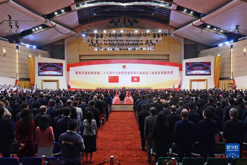 香港祖國復(fù)帰25周年祝賀大會?香港特別行政區(qū)第6期政府就任式が1日午前に香港コンベンション&エキシビションセンターで盛大に行われ、習(xí)近平中共中央総書記(國家主席、中央軍事委員會主席)が出席して、重要演説を行った。新華社が伝えた。