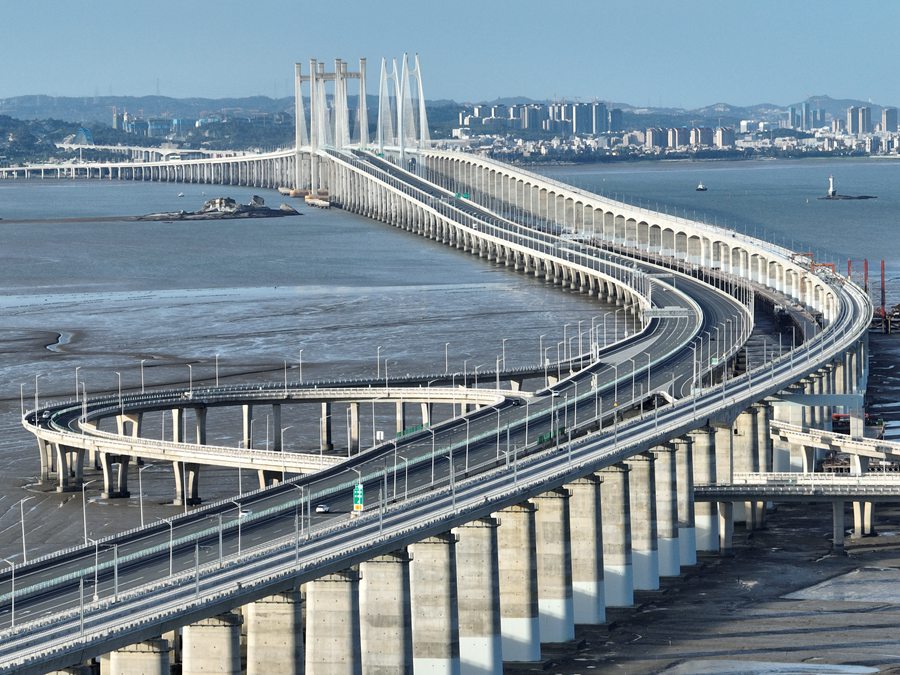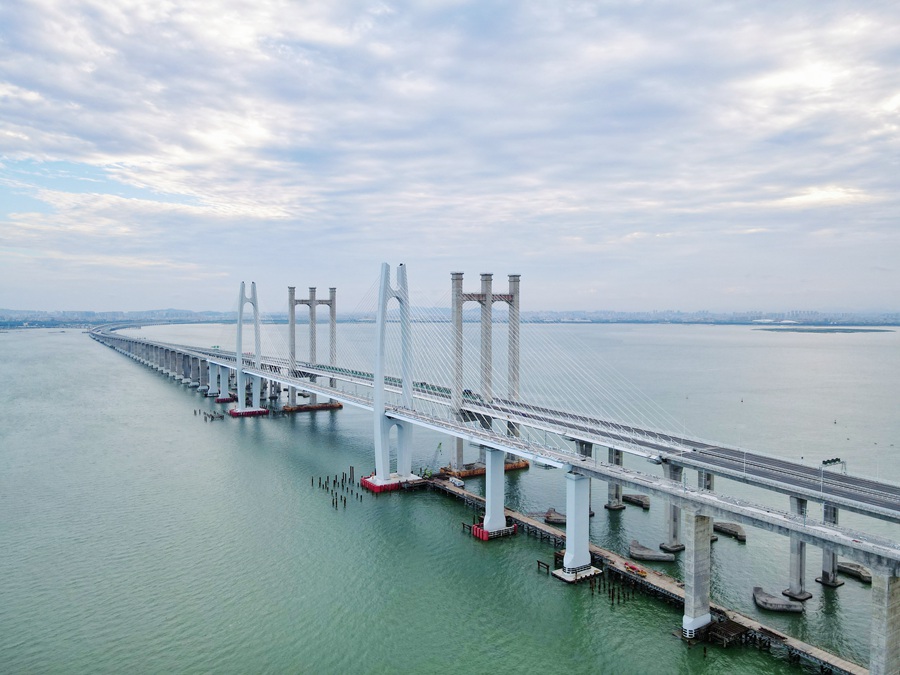 中交第二航務工程局有限公司プロジェクト常務サブマネージャーの劉福星氏によると、泉州灣海上大橋は高速道路と都市幹線道路を14回跨ぐ。スラブ軌道の総延長は52.4キロメートル。スラブ軌道の施工期間中、材料の輸送が困難で、交差施工の作業(yè)面が多いといった數(shù)多くの難題が解決された。