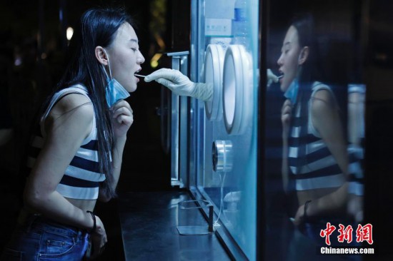 7月5日夜、PCR検査を受ける上海市民(撮影?殷立勤)。