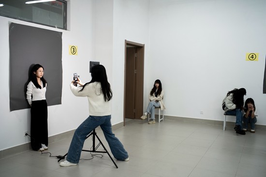 4月28日、撮影室で來年の卒業(yè)シーズンに學(xué)校に戻れなくなった時に備えて、早めに卒業(yè)寫真を撮影する3年の女子大生。