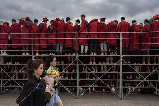 卒業(yè)シーズンである6月になると、學(xué)生たちはマニュアルに従い、自由に學(xué)校を出入りすることができるようになった。學(xué)生たちはグループになって気晴らしに出掛けるようになり、學(xué)校に戻って來ることはできないとあきらめかけていた卒業(yè)生たちも馴染み深いキャンパスに戻って來た。そして、アカデミックドレスを著て運動場に繰り出し、記念寫真を撮影したり、タッセルを空に向かって投げたり、スポットライトの下でタッセルを右から左に回す儀式に參加したりしていた。卒業(yè)するのは「00後(2000年生以降まれ)」としては第一陣となる大學(xué)生で、4年のキャンパスライフのうち2年半は新型コロナウイルス感染癥の影響を受けたものの、その「エピローグ」で、これまでの心殘りが少し埋め合わされたかのようだ。