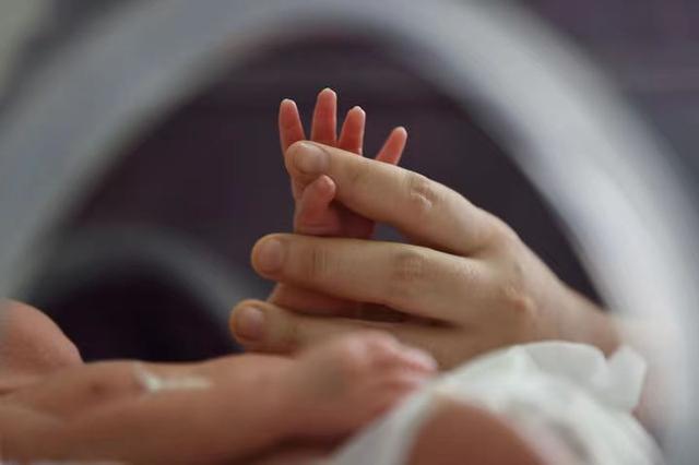 2022年1月1日、江蘇省南京市の江寧病院で新生児の手を握る醫(yī)療従事者(畫像は新華社から)。