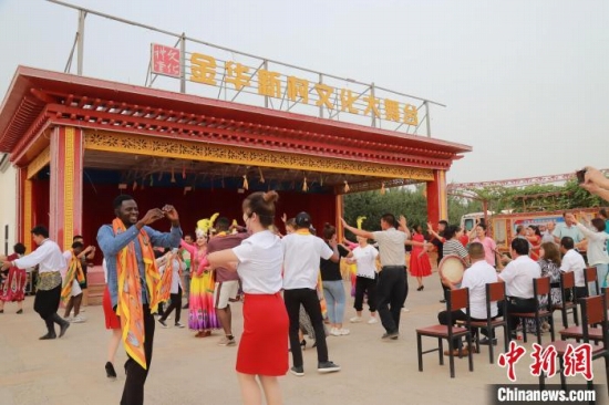 民族ダンスを踴る留學(xué)生たち(寫真提供?浙江師範(fàn)大學(xué))。