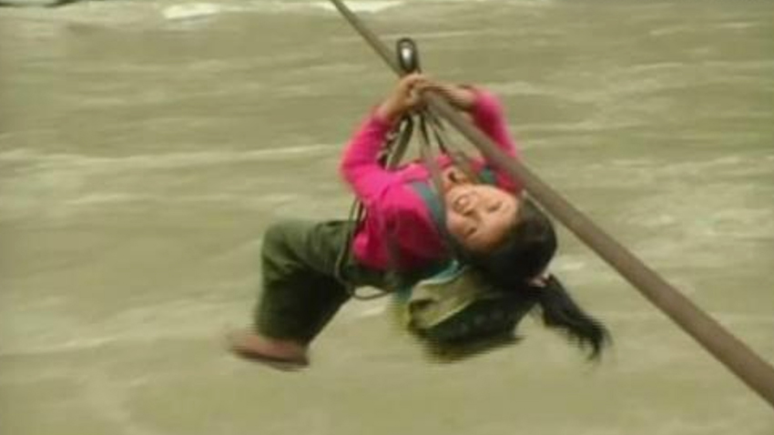 當(dāng)時(shí)8歳だった余さんはちょうど小學(xué)1年生になったばかりで、1日に2度、一人でワイヤーロープを滑車で滑って川を渡るという生活をすでに2年も送っていた。