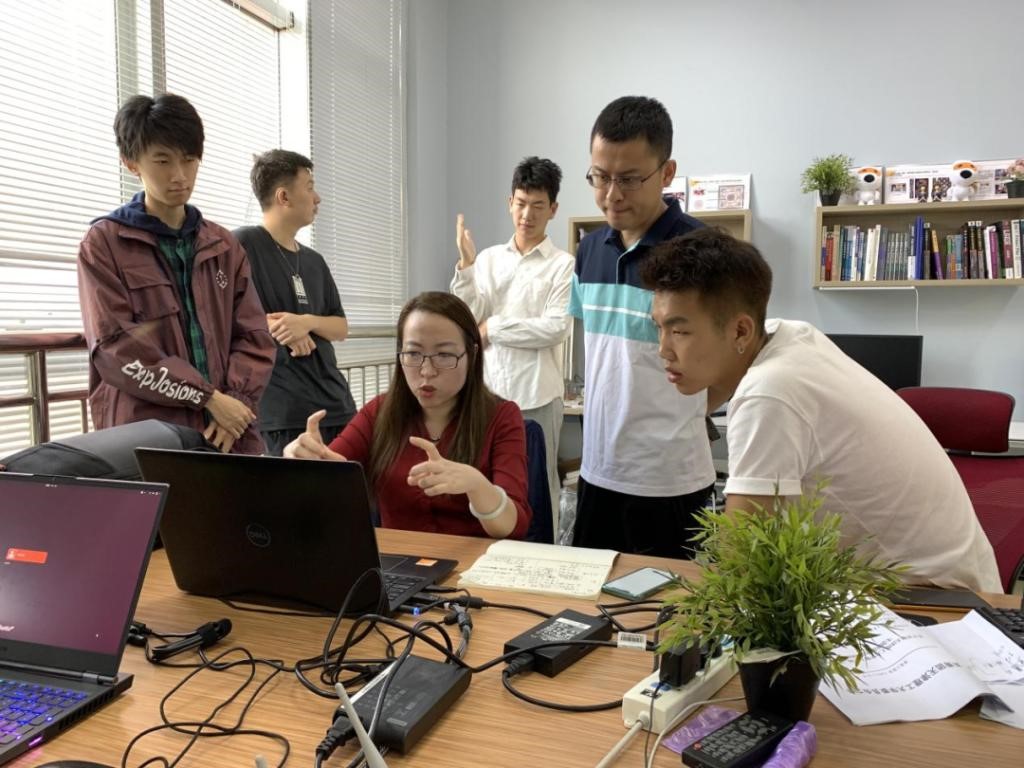 議論を交わす研究チームのメンバー。(畫像提供は天津理工大學(xué)聾者工學(xué)院)