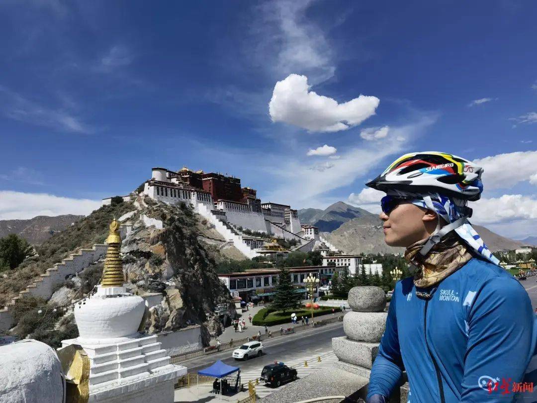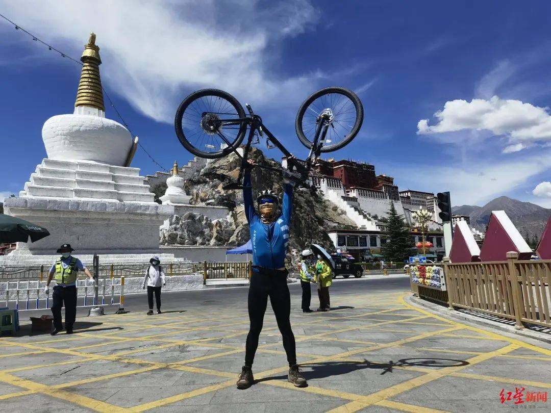 「向こうのほうにポタラ宮が見えてきた時(shí)の思いは言葉で表現(xiàn)できない。心があまりにもワクワクして、涙が出そうになった。ここ1ヶ月のたいへんな旅や野宿を思い出したほか、いろんな複雑な思いが絡(luò)み合っていた」と謝君。そして、両手で自転車を持ち上げて、ポタラ宮をバックに記念寫真を撮影した。