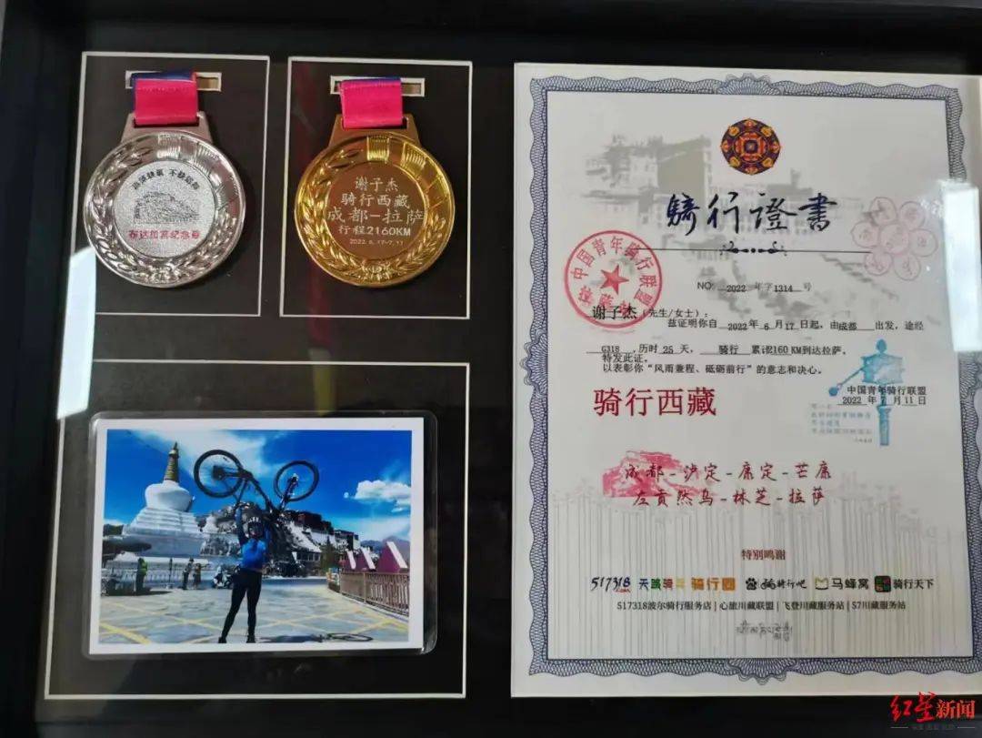 ラサまで殘り180キロに迫った時(shí)、謝君は気分を高ぶらせていたものの、ホテルで自転車がパンクしたことに気付き、すぐに修理して早朝6時(shí)半に出発?!缸钺幛螛?biāo)高5013メートルの米拉山を越えると、ラサに著くと思うと気分がとても高揚(yáng)した。これまでの努力を絶対に水の泡にしてはいけないと思った」と振り返る。