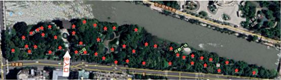 活水公園內に設置された「蚊駆除機」50臺の分布図(資料提供?錦江公園)。