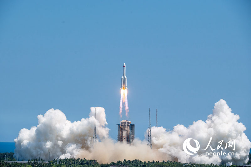 実験モジュール「問天」を搭載した「長征5號B遙3」キャリアロケットが7月24日、文昌航天発射場から打ち上げられた。(撮影?翁奇羽)