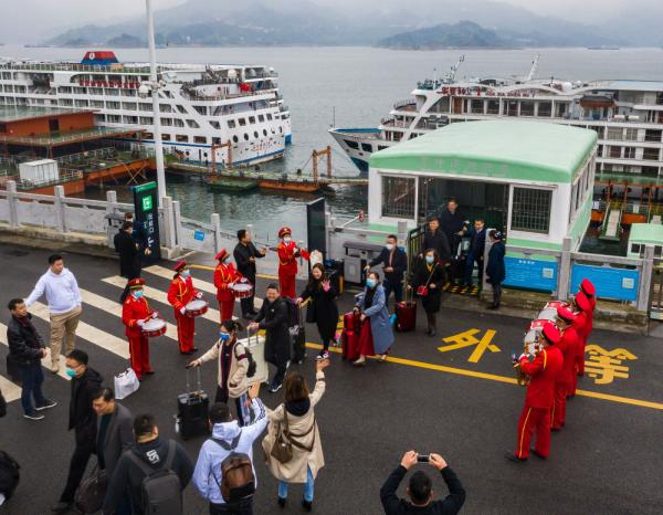 三峽クルーズ客船は6月18日に運(yùn)航を再開し、これまでに全體の約6割に當(dāng)たる31隻が200回以上運(yùn)航されてきた。統(tǒng)計(jì)によると、三峽ダムの上流にある秭帰県秭帰観光港では、1日當(dāng)たり約2000人の観光客が乗降している。各地の観光客が「動(dòng)く豪華ホテル」に乗って、長(zhǎng)江流域にある三峽にやって來て、比類ない景色をじっくりと楽しんでいる。(編集KN)