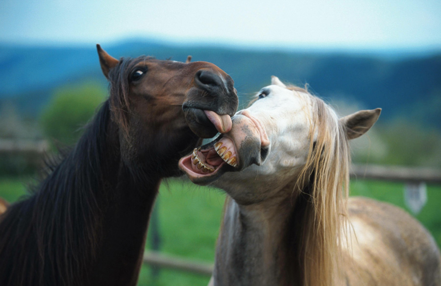 熱烈なキッスを交わす馬のカップル(寫真著作権は東方ICが所有のため転載禁止)。