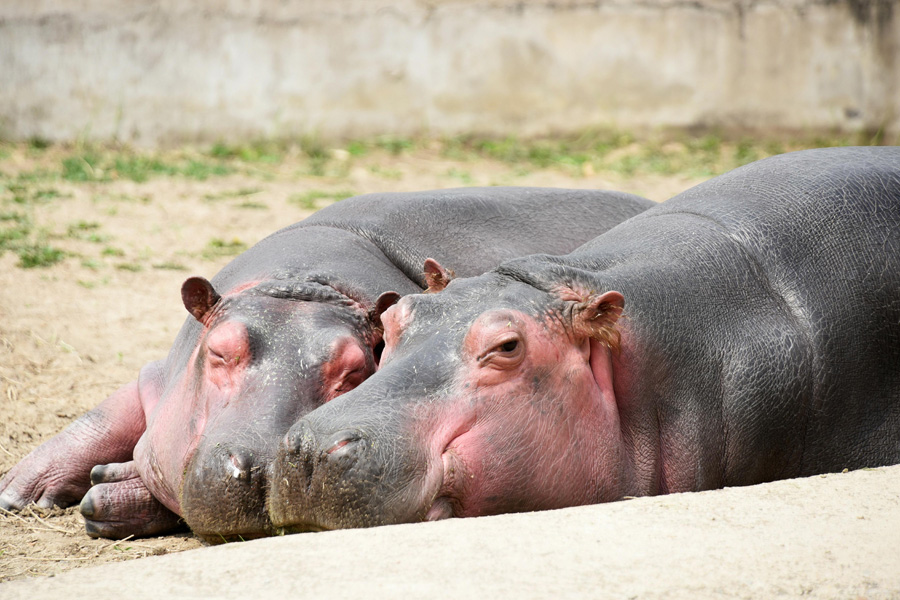 どんな暑さでもピッタリ寄り添い晝寢するカバのカップル(寫真著作権は東方ICが所有のため転載禁止)。