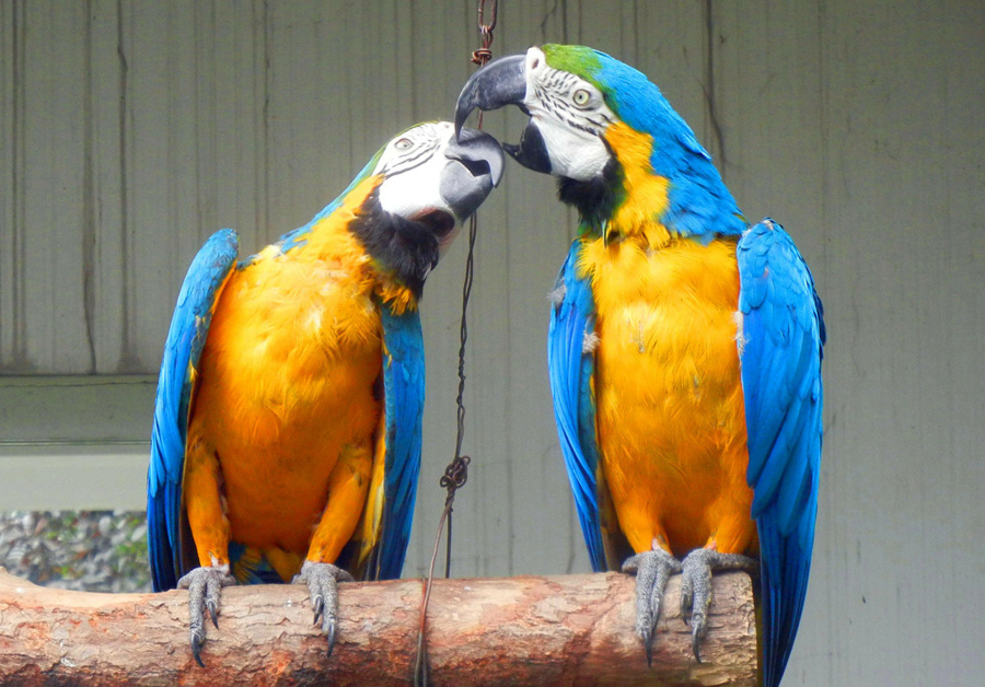 「かたい」クチバシで「かたい」愛情を確かめ合うオウムのカップル(寫真著作権は東方ICが所有のため転載禁止)。