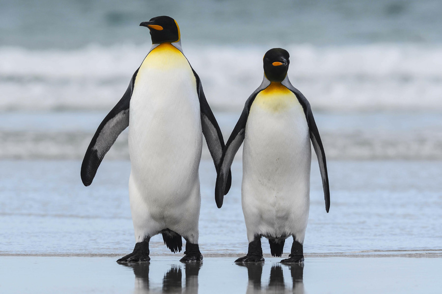 まるで手をつないでいるように寄り添いながら並んで歩くペンギンのカップル(寫真著作権は東方ICが所有のため転載禁止)。