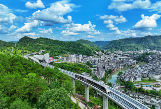 歴史的景観広がる湖南省鳳凰県で磁気浮上式観光特急線が正式に運営開始