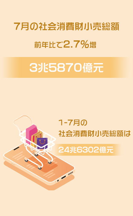 中國(guó)、7月の社會(huì)消費(fèi)財(cái)小売総額が前年比2.7%増