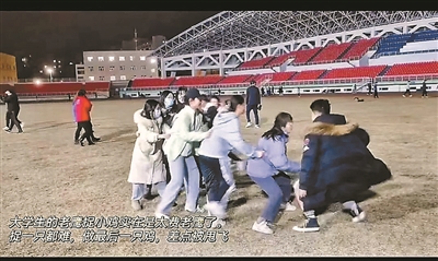 「鷹と雛の追いかけっこ」をする哈爾浜(ハルビン)工業(yè)大學の學生たち。