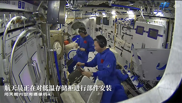 動畫の中で、陳冬飛行士、劉洋飛行士、蔡旭哲飛行士は問天で科學(xué)グローブボックスと低溫保存裝置のロック解除と設(shè)置作業(yè)を行った。科學(xué)グローブボックスは溫度と濕度を制御できる密閉された清潔な環(huán)境を提供でき、生命科學(xué)や材料科學(xué)などの學(xué)科?分野の宇宙実験?試験にサポートを提供する上、宇宙飛行士の軌道上における細(xì)かな操作、または繰り返しの操作が必要な科學(xué)実験の実現(xiàn)をサポートできる。低溫保存裝置は冷蔵庫に相當(dāng)し、4℃、-20℃、-80℃の低溫保存能力を提供でき、異なるサンプルに必要な低溫保存條件を満たせる。