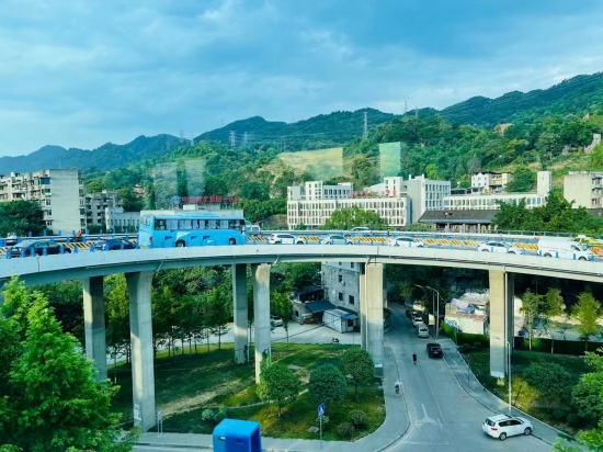 重慶市の高架橋(8月15日、撮影?小鵬)