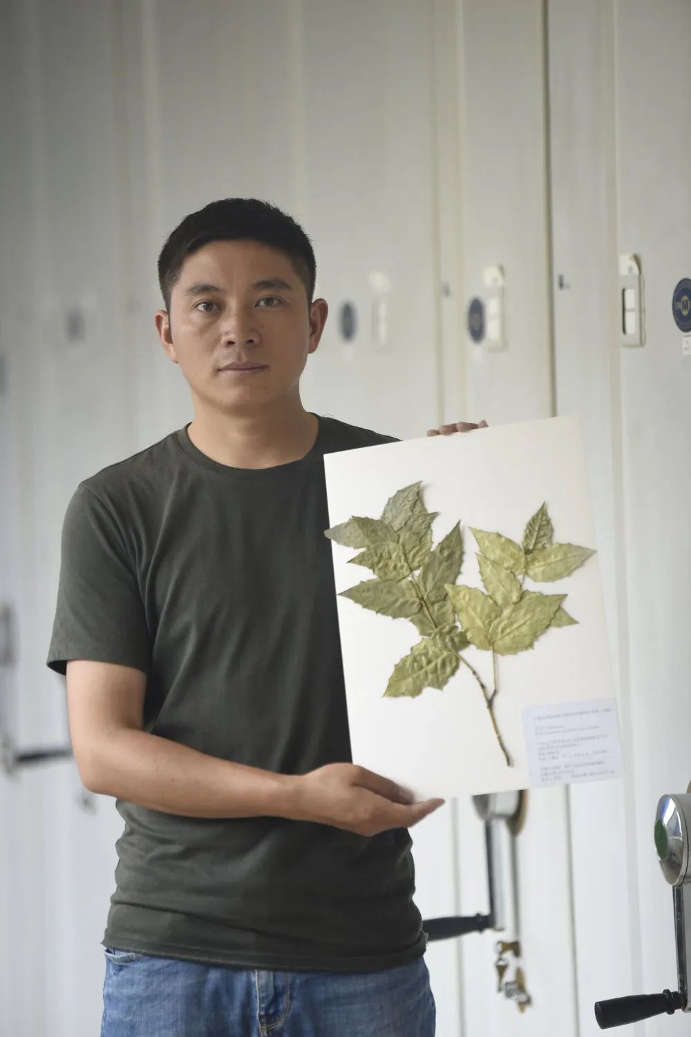 採(cǎi)集された尖歯衛(wèi)矛の標(biāo)本を見(jiàn)せる胡君氏。