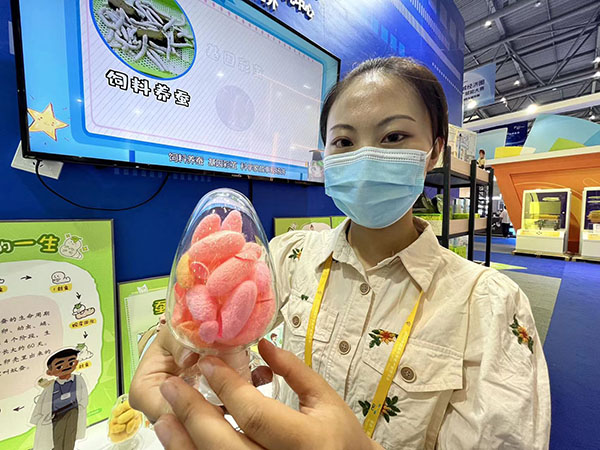 科學教育製品設(shè)備展示エリアで、西南大學生物學研究センターの職員が、同機関の展示品の色付き繭を紹介した。「これは赤い蛍光繭で、最先端のゲノム編集技術(shù)を採用している。蠶をタンパク質(zhì)生産工場とし、クラゲの赤色蛍光タンパク質(zhì)を生産する。この技術(shù)により人々が必要な醫(yī)療用?美容用のタンパク質(zhì)をローコストで大量生産できる」という。(編集YF)