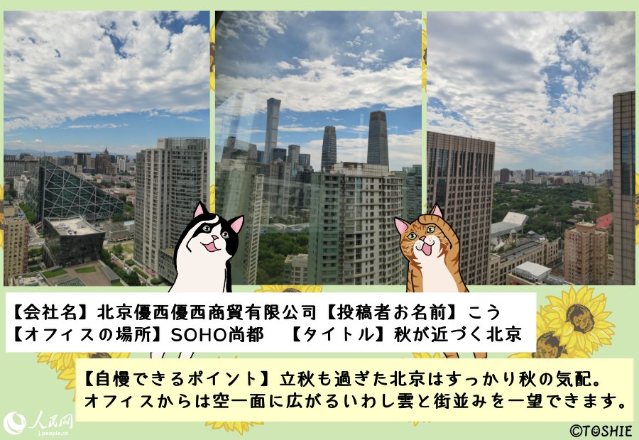 人民網(wǎng)では、ウチのオフィスの窓からはこんな風(fēng)景またはこんなモノが見(jiàn)えるという自慢をしていただく「マドコレ(窓から見(jiàn)た風(fēng)景コレクション)」を毎週火曜日に掲載中!オフィスの窓からの眺めでもよし、お仕事中の窓からの眺めでもよし、とにかく窓から眺めた様子を?qū)懁筏繉?xiě)真とそれにまつわるエピソードをご投稿ください!