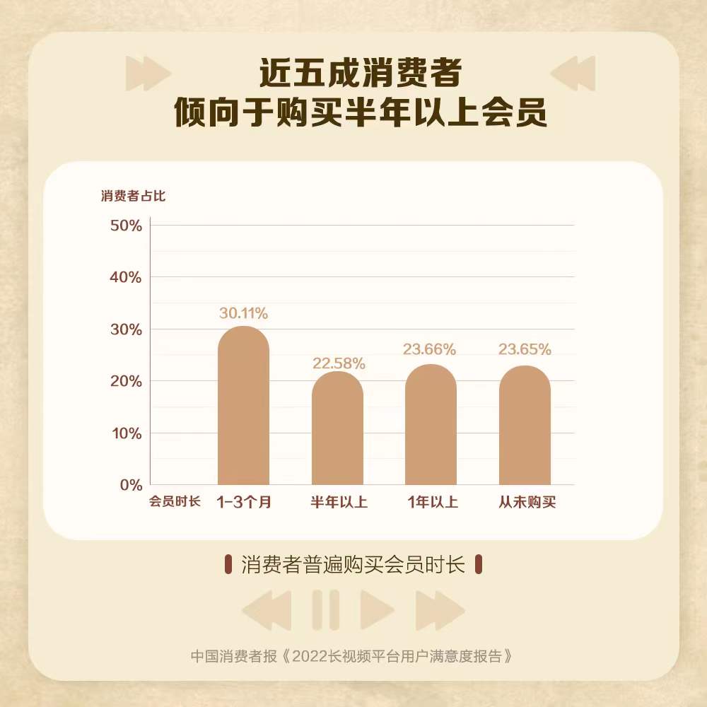 多くの消費(fèi)者がロング動(dòng)畫プラットフォームの會(huì)員になっているのは、自分の好きなドラマやバラエティ番組があるからで、そのような番組の配信周期は通常1—3ヶ月だ。調(diào)査では、最も人気の會(huì)員プランは「1—3ヶ月」で、30.11%だった。半年以上、または1年以上のプランを選ぶユーザーも2割以上いる。その他、2割のユーザーが「ロング動(dòng)畫プラットフォームの有料會(huì)員になっていない」と答えた。