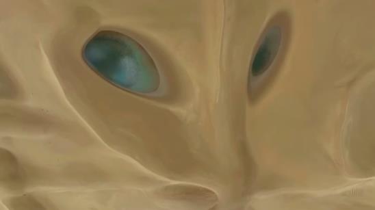 新疆維吾爾(ウイグル)自治區(qū)庫木庫里(クムクリ)砂漠で7月、大雨が降って、砂の尾根を挾んで二つの池ができるという珍しく神秘的な景色が出現(xiàn)。この景色をあるカメラマンがドローンを使って撮影したところ、まるで空を睨む砂漠のキツネのように見えた。中央テレビニュースが報(bào)じた。