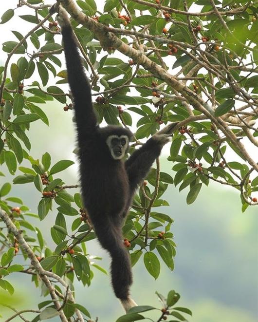 キタホオジロテナガザルのオス。(撮影?馬暁鋒)