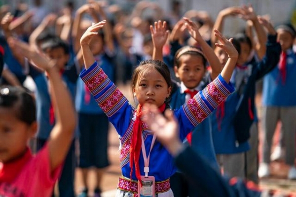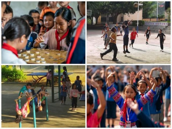質(zhì)素な設(shè)備しかないものの、體育の教師はあの手この手を使って児童が體育の授業(yè)が好きになれるよう取り組んでいる。日差しの強(qiáng)い午後2時(shí)半、體育の褚志華先生は、ガジュマルの木の下で、タオルを結(jié)んで作ったボール5個(gè)を使って、仰向けや座った狀態(tài)、立った狀態(tài)でそれを投げるよう児童を指導(dǎo)していた。授業(yè)中は笑い聲が絶えず、「児童は毎日、3時(shí)間以上外で運(yùn)動(dòng)している」と褚先生は言う。