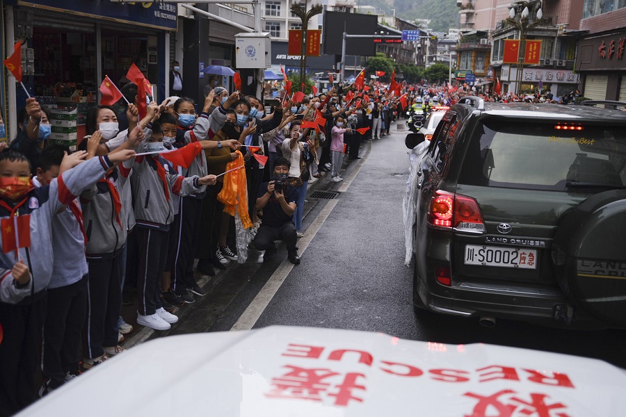 四川省の地震被災(zāi)者、感謝の涙を浮かべて救援チームを見送り