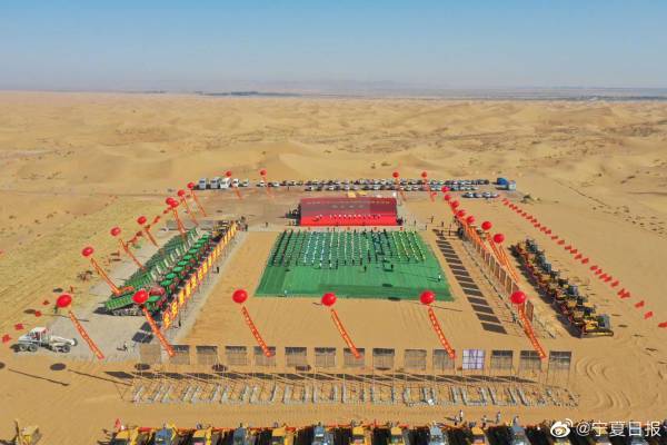 中國(guó)最大規(guī)模の砂漠太陽(yáng)光発電拠點(diǎn)建設(shè)プロジェクトとなる「トングリ砂漠3ギガワット(GW)新エネルギー?太陽(yáng)光発電複合プロジェクト」の著工式が今月9日、寧夏回族自治區(qū)中衛(wèi)市で行われた。