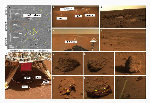 祝融號(hào)著陸エリアの火星の地質(zhì)的特徴と巖石。