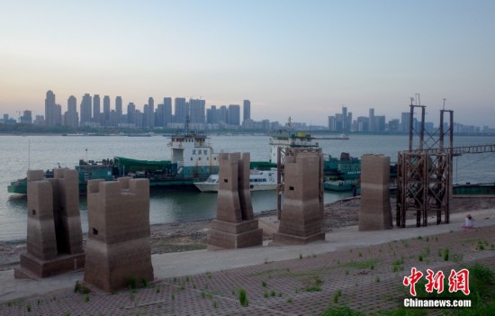 長(zhǎng)江の水位が下がり、武漢で粵漢線跡が露出