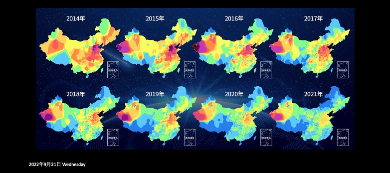 2014-2021年の中國の大気の質(zhì)の改善狀況。ソース「青空への道:この10年の大きな変化と2030年までの展望」報告
