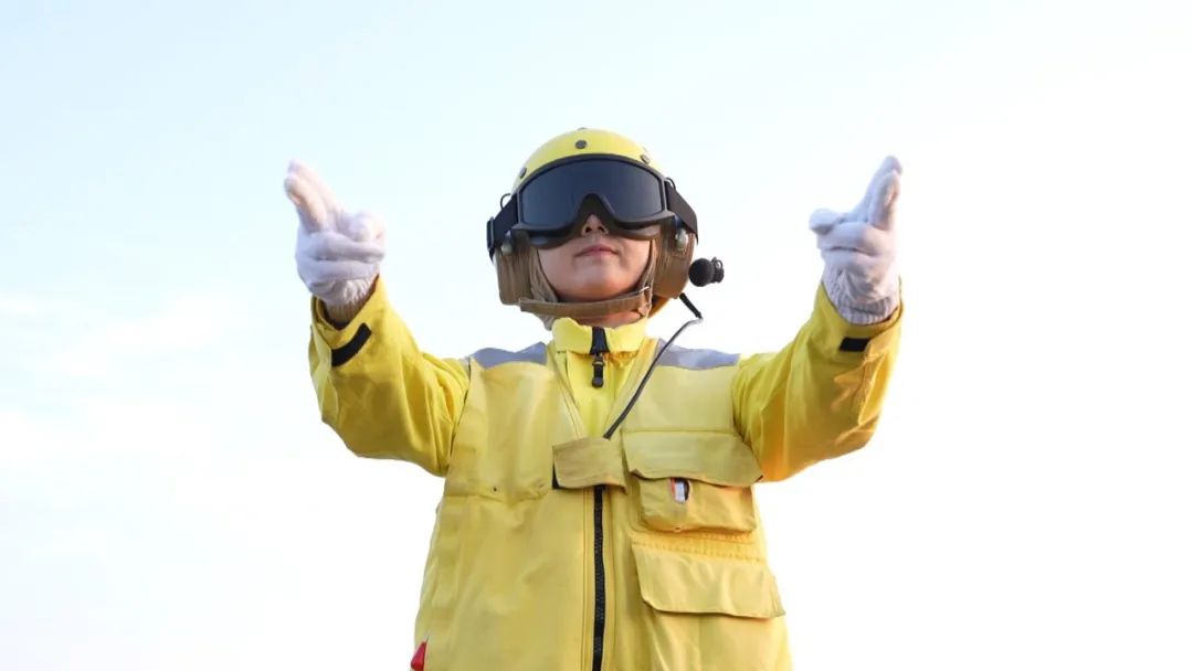 そして、係留員になってもうすぐ1年という時に、劉さんはヘリコプター誘導(dǎo)員育成の対象に選ばれ、作業(yè)服の色が黃色に変わった。