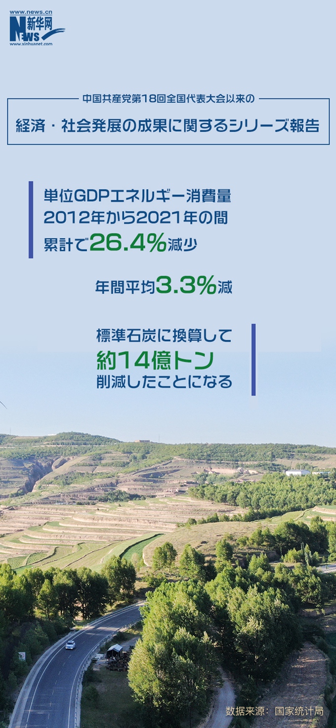 2012年の中國共産黨第18回全國代表大會(huì)以來の経済?社會(huì)発展の成果に関するシリーズ報(bào)告が8日、中國國家統(tǒng)計(jì)局により発表され、中國の単位GDPエネルギー消費(fèi)量が2012年から2021年の間に累計(jì)で26.4%減少したことが明らかとなった。これは年間平均にすると3.3%減で、標(biāo)準(zhǔn)石炭に換算して約14億トンの使用を削減したことになる。新華社が伝えた。