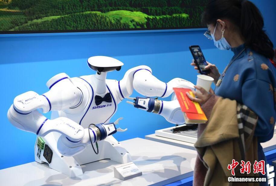 このほど、「奮進(jìn)新時(shí)代(新時(shí)代を奮起して進(jìn)む)」テーマ成果展が北京展覧館で開(kāi)催され、大勢(shì)の來(lái)場(chǎng)者でにぎわった。畫(huà)像は11日、北京展覧館に展示されたダブルアーム協(xié)働ロボットを見(jiàn)入る來(lái)場(chǎng)者。(編集KS)