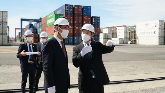 10月11日、駐日中國大使館の楊宇臨時(shí)代理大使一行は神奈川県の橫浜港本牧ふ頭の物流現(xiàn)場を訪れた。(撮影?呉穎)