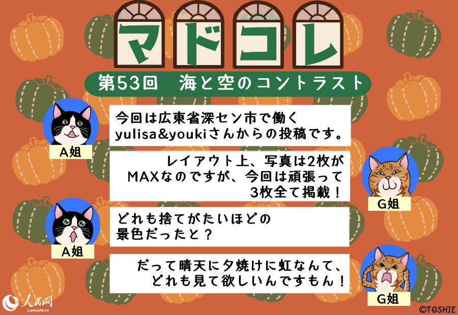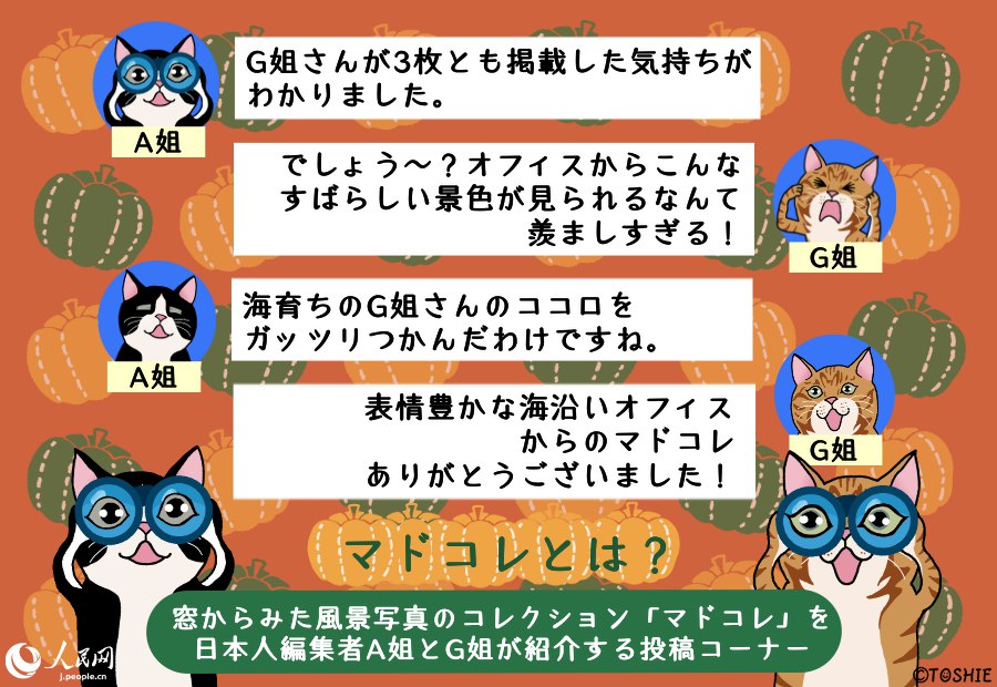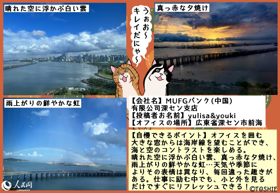 人民網(wǎng)では、ウチのオフィスの窓からはこんな風景またはこんなモノが見えるという自慢をしていただく「マドコレ(窓から見た風景コレクション)」を毎週火曜日に掲載中!オフィスの窓からの眺めでもよし、お仕事中の窓からの眺めでもよし、とにかく窓から眺めた様子を寫した寫真とそれにまつわるエピソードをご投稿ください!