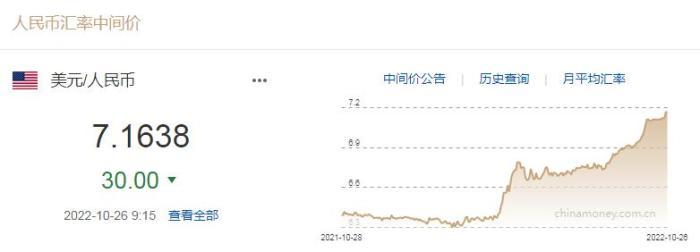 10月26日の人民元対ドルレートは7.1638元 30bs上昇