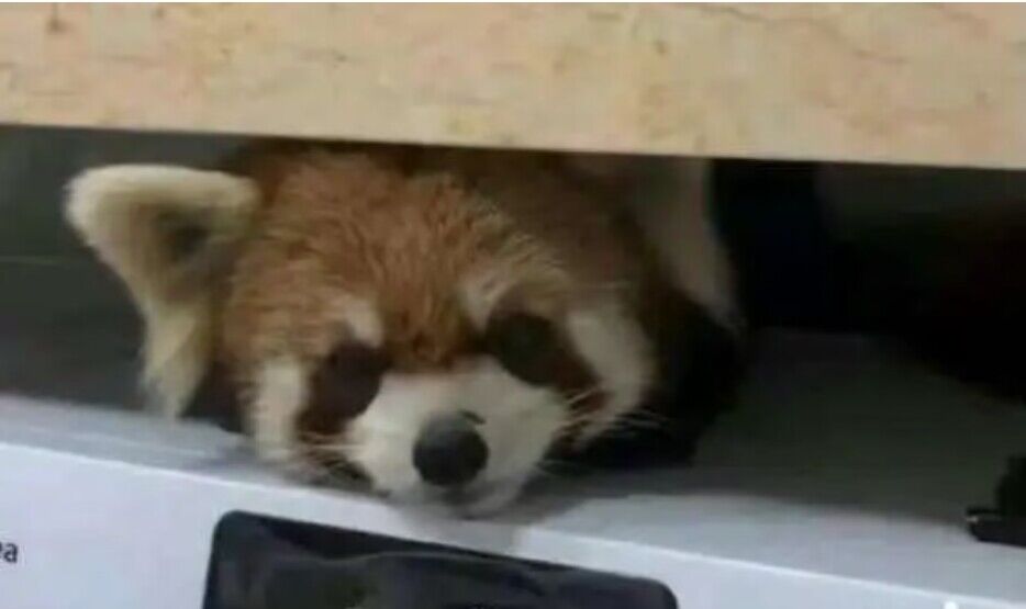 その正體は同大學(xué)向かいにある昆明動(dòng)物園から「脫走」した1匹のレッサーパンダ。発見(jiàn)當(dāng)初は花壇をうろついていたレッサーパンダだったが、學(xué)生寮の正面入り口から堂々と寮內(nèi)に闖入すると、驚く學(xué)生たちを橫目に「見(jiàn)學(xué)」スタート!ランドリー室にたどり著き、洗濯機(jī)と棚のすき間からつぶらな瞳の可愛(ài)らしい顔を覗かせ、騒動(dòng)を聞きつけ集まった學(xué)生たちをメロメロにした。