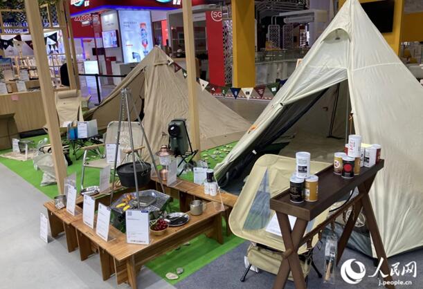 中國で人気の高まっているキャンプ用品を展示したジャパン?パビリオンの消費(fèi)品ブース(寫真提供?JETRO上海事務(wù)所)。