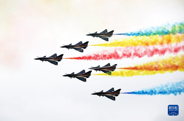 11月8日、第14回中國(guó)國(guó)際航空宇宙博覧會(huì)でアクロバット飛行を披露する空軍の「八一アクロバット飛行隊(duì)」(撮影?張永進(jìn))
