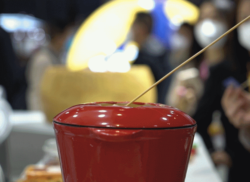 例えば、乳製品製造を手がける「妙可藍(lán)多」の展示ブースでは「火鍋」が人気となり、カウンターの前には長(zhǎng)蛇の列ができていた。なぜ、「火鍋」がそれほどの注目を集めたのだろうか?なぜならその「火鍋」とはチーズがとろ~りと伸びる「チーズフォンデュ」だったからだ。
