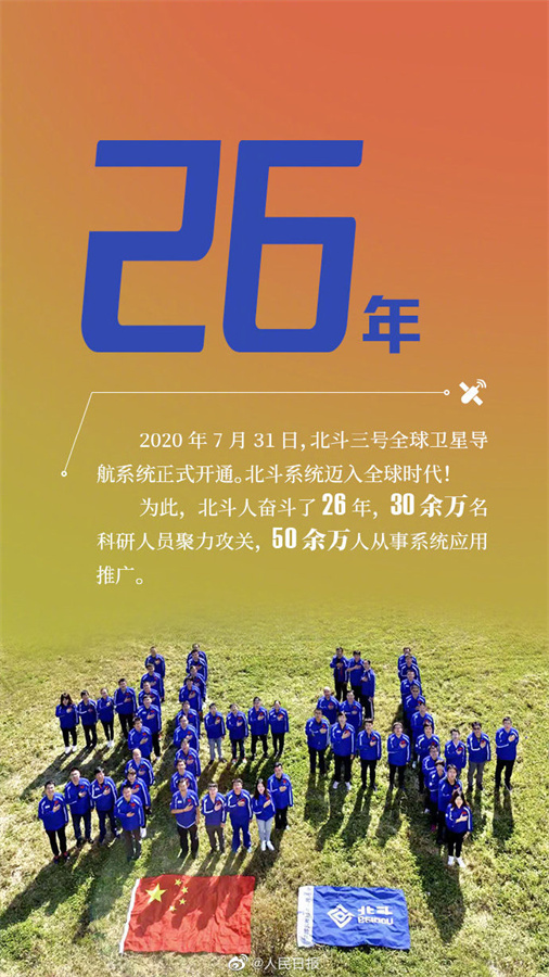 北斗3號(hào)グローバル衛(wèi)星測(cè)位システムは2020年7月31日に正式に運(yùn)用を開始し、北斗システムはグローバルの時(shí)代に入った。北斗関係者は26年間力を注ぎ続け、30萬人余りの科學(xué)研究者が研究開発を行い、50萬人余りの人がシステムの応用推進(jìn)に従事してきた。