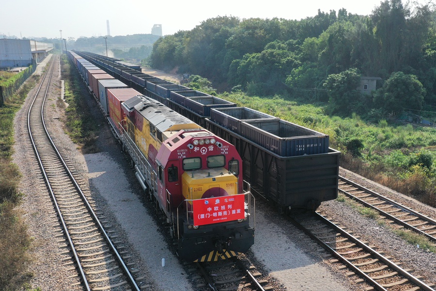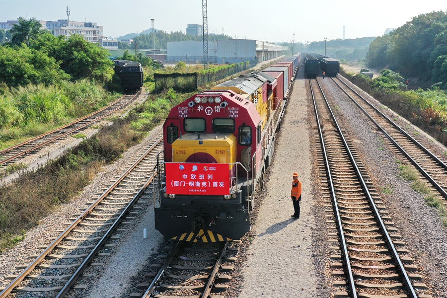 20日午前、國(guó)際定期貨物列車「中歐班列」の「廈門(アモイ)號(hào)」初のベラルーシ?ミンスクへの直通列車が、福建省の中國(guó)(福建)自由貿(mào)易試験區(qū)廈門エリアの海滄駅をゆっくりと出発してベラルーシに向かった。これにより中歐班列?廈門號(hào)の路線展開がより効率的になり、多層的な國(guó)際物流システムの構(gòu)築がますます整備されている。人民網(wǎng)が伝えた。