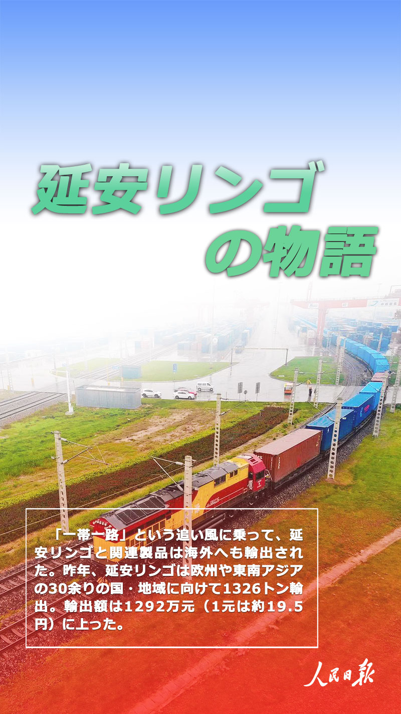 「一帯一路」という追い風に乗って、延安リンゴと関連製品は海外へも輸出された。昨年、延安リンゴは歐州や東南アジアの30余りの國?地域に向けて1326トン輸出。輸出額は1292萬元(1元は約19.5円)に上った。