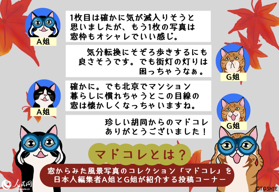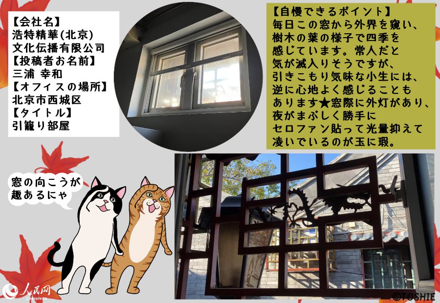 人民網(wǎng)では、ウチのオフィスの窓からはこんな風景またはこんなモノが見えるという自慢をしていただく「マドコレ(窓から見た風景コレクション)」を毎週火曜日に掲載中!オフィスの窓からの眺めでもよし、お仕事中の窓からの眺めでもよし、とにかく窓から眺めた様子を?qū)懁筏繉懻妞趣饯欷摔蓼膜铯毳ē豫僵`ドをご投稿ください!