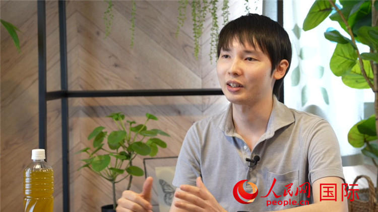人民網(wǎng)の取材に応える御器谷裕樹さん(撮影?呉穎)。